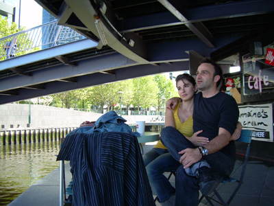 Under the bridge, a cafe!!! Cafe for trolls?            Here is us at the cafe! I don't remember what it's called...